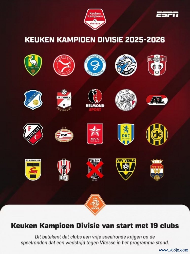 8月1日讯 荷兰足协官方宣布,由于维特斯负债严重,职业执照被吊销,禁止参加职业职业联赛 ,新赛季荷乙参赛球队数量从20支减至19支。