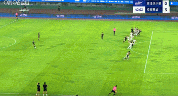 第42分钟, 中超浙江队开出任意球, 游泳快讯混战中卢卡斯抽射破门!但边裁举旗示意,张佳祺第一下越位在先,进球无效↓