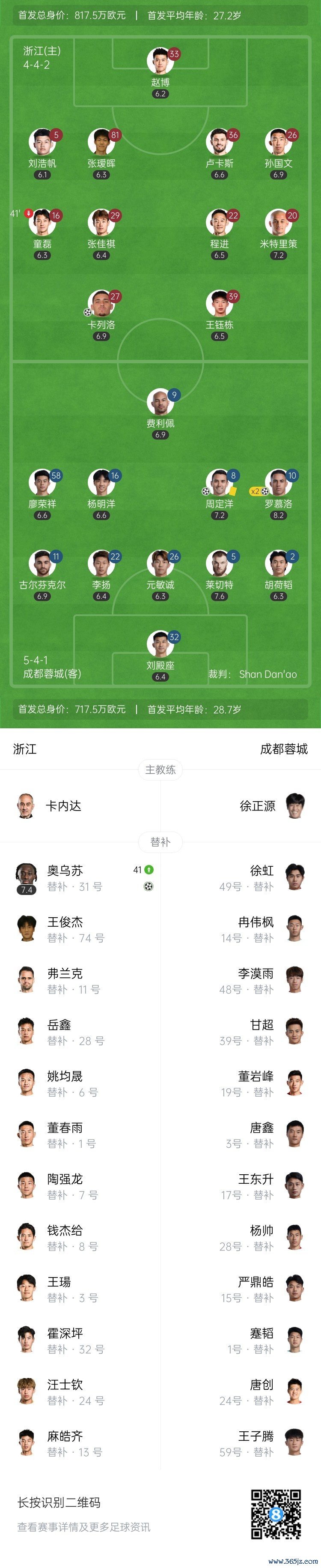 第29分钟,莱切特突然带球向前,晃动后右脚传中到小禁区前,罗慕洛插上头球破门!成都蓉城1-0领先浙江队↓